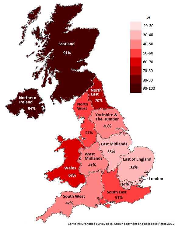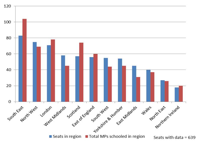Note: The data includes all MPs in Parliament on 14 October 2012, where biographical information was available. Birthplace data was found for 473 MPs and school data for 639 MPs. The full, anonymised dataset is available to download here (ods format).