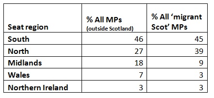 Table Four: Location of parliamentary constituency among ‘migrant Scot’ MPs